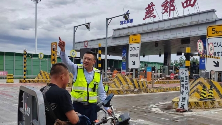2025年4月17日,燕郊西收费站当班班长在进行日常巡查时,敏锐地发现一名行人正徘徊在高速公路入口处,似乎准备通过收费站进入高速。班长见状,迅速跑步上前制止。[详细]