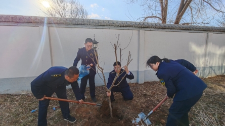 党建引领添新绿 美丽站区焕新颜‌ 固安南收费站党支部开展植树主题党日活