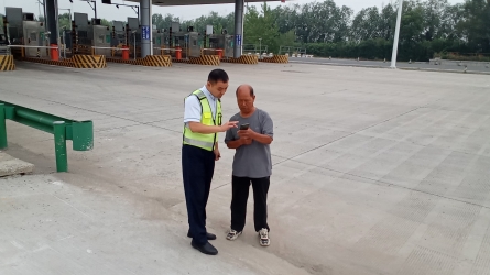 9月11日上午9时左右,高官庄收费站外广场上,一辆货车停靠许久未驶离。收费员发现后,主动上前询问情况。[详细]