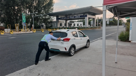 9月17日上午11时,蒋福山收费站出口车道外,一辆小客车停靠在收费广场安全区域,当班班长发现异常后立即上前排查。[详细]
