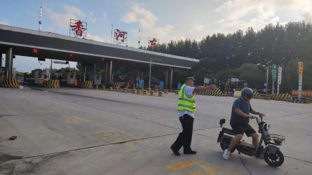 8月27日,一位男士骑着一辆电动车,朝着香河东收费站出口车道逆向驶来,正在值班的班长冯立斌发现后立刻跑过去制止了电动车,并把他带到广场安全地带。[详细]