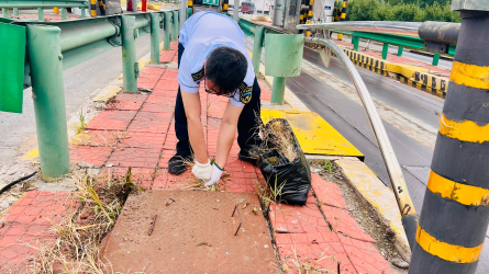 7月22日,连日酷暑终于退场,微风裹着雨后的凉意吹进东湾收费站。站领导带队,不拿铁锹,也不带镰刀,每人只戴一副手套,蹲下身,贴着地面把杂草连根拔起。[详细]