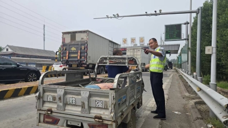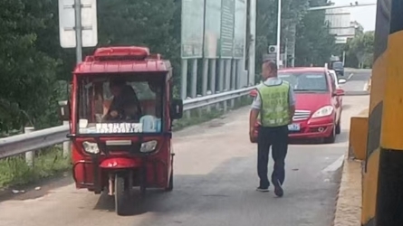 8月10日16时26分,疏导人员在入口处发现一辆电动三轮车正欲跟随其他车辆驶入高速。[详细]