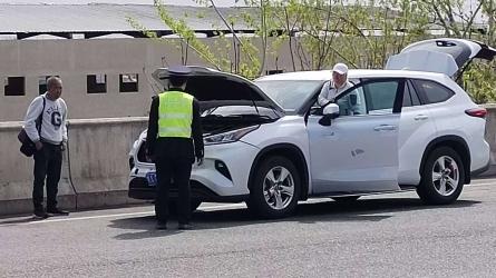 4月9日下午2点左右,蒋福山收费站出口广场处停了一辆白色小轿车,车上下来两位老人正在打开机箱盖不断查看。[详细]