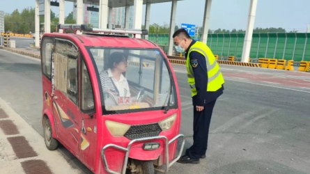 4月22日中午,正值收费一班白班,003车道缓缓驶来一辆电动三轮车,电车阿姨要求领卡上高速,收费员告知其电动车是禁止上高速的,[详细]