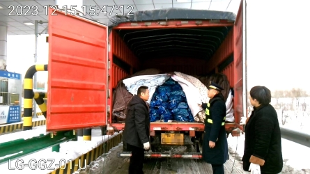 2023年12月18日晚6点20一辆两轴黄牌货车驶入廊坊西六道。司机称车上拉的苹果,班长盖江涛和验货员孙旭东核对车辆重量行驶证后开始验货[详细]