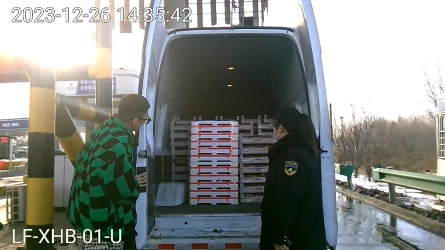 2023年12月18日晚6点20分,一辆两轴黄牌货车驶入廊坊西六道。司机称车上拉的苹果,班长盖江涛和验货员孙旭东核对车辆重量行驶证后开始验货[详细]