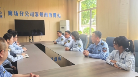 4月30日,廊坊分公司党委书记智韶宇到广阳收费站进行节前督导检查,分公司办公室主任王皓琳陪同。[详细]
